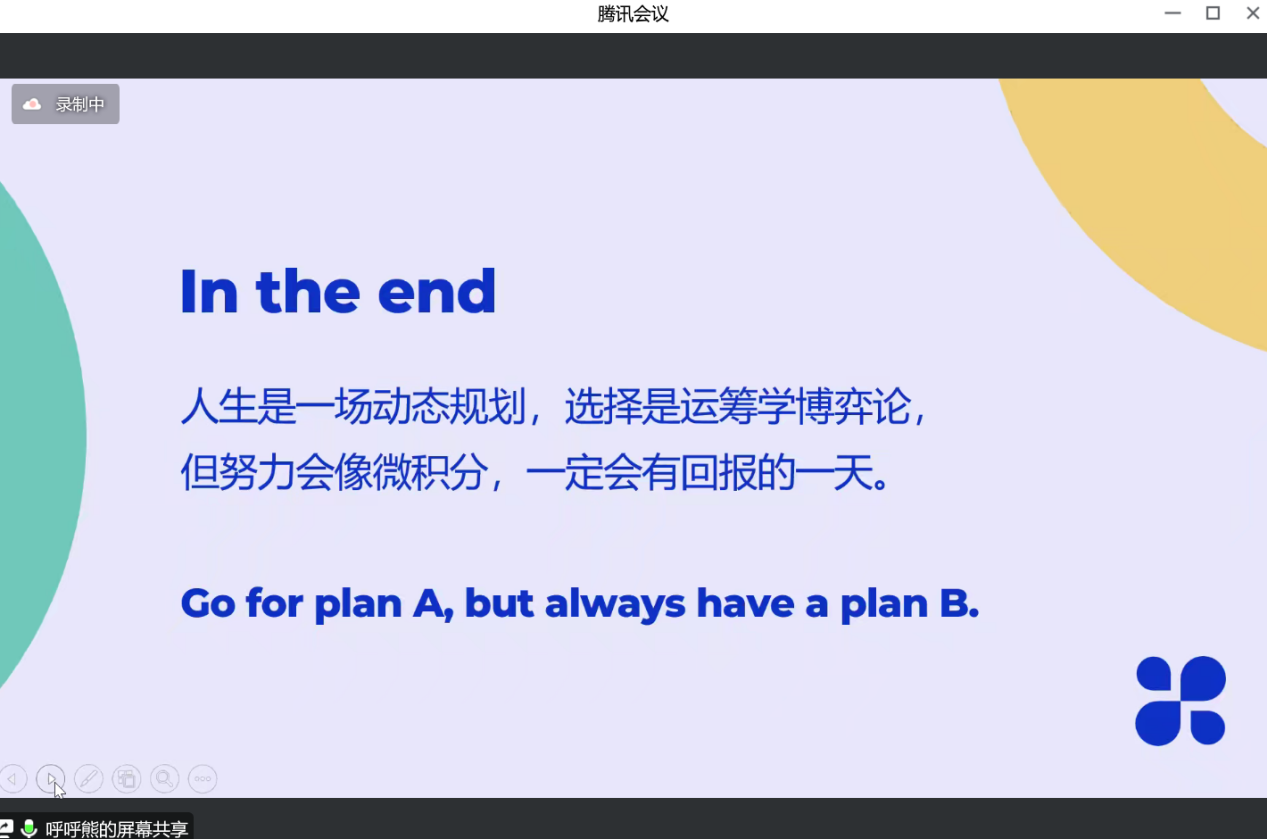 最后,王绪爽就“权衡和规划”、“兴趣和生计”、“投入和收益”、“家庭期望”等话题进行了深入交流。她告诉同学们“人生是一场动态规划,选择是运筹学博弈论,但努力会像微积分,一定会有回报对的一天”。